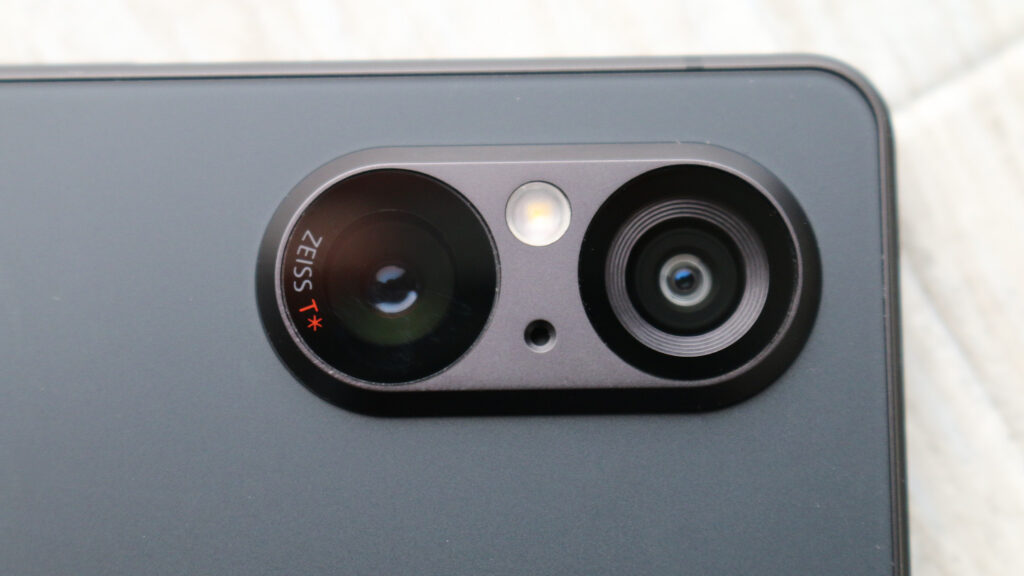 De Sony Xperia-serie staat voornamelijk bekend om zijn camera-prestaties. Het valt dan ook gelijk op dat de Xperia 5 V een camera minder heeft dan zijn voorganger. In plaats van een driedubbele rear-camera, vinden we in de camera-module van de Xperia 5 V slechts twee lenzen. Het gaat om een 48MP (F1.9) hoofdlens en een 12MP (F2.2) groothoeklens. De telelens ontbreekt dus.